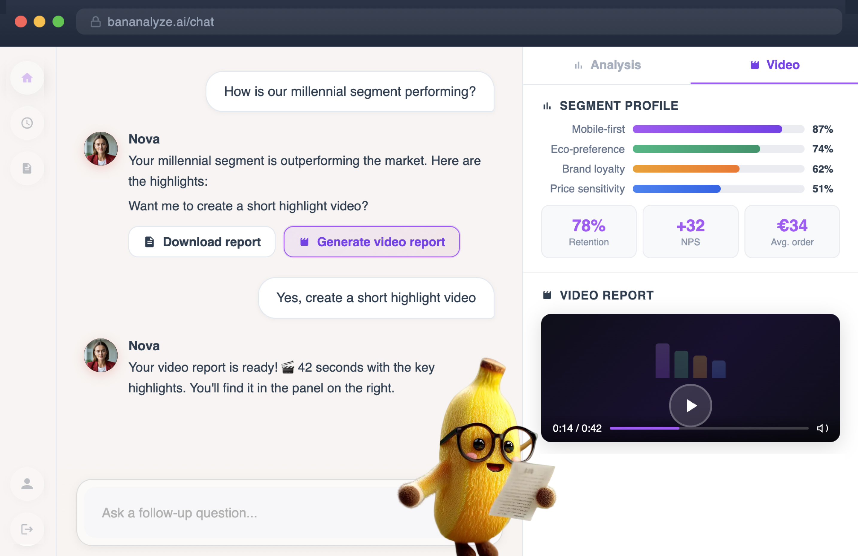 Waar AI snelle maar soms onzekere inzichten biedt, en traditioneel marktonderzoek juist tijdrovend en kostbaar is, brengt Bananalyze beide samen. Deze innovatie tool combineert voorspellende AI met data uit twintig jaar