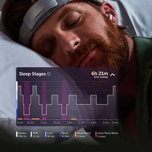 • Slaapoptimalisatie: Dit is waar de Athena uitblinkt voor mij. Met slaapapneu-issues in het verleden, gaf de tracking gedetailleerde data: ik ontdekte dat ik vaak in rugpositie dieper slaap, en de ‘Deep Sleep Boost’ verlengde mijn diepe slaap met 15-20%. Ik viel sneller in slaap (tot 55% sneller, volgens Muse-claims die ik bevestigde). De app’s ochtendrapporten zijn inzichtvol, met tips zoals “Probeer eerder te ontspannen”. Comfort ’s nachts? Uitstekend; ik vergat hem vaak. Echter, bij zweterige nachten verschuift hij lichtjes, wat data kan beïnvloeden.